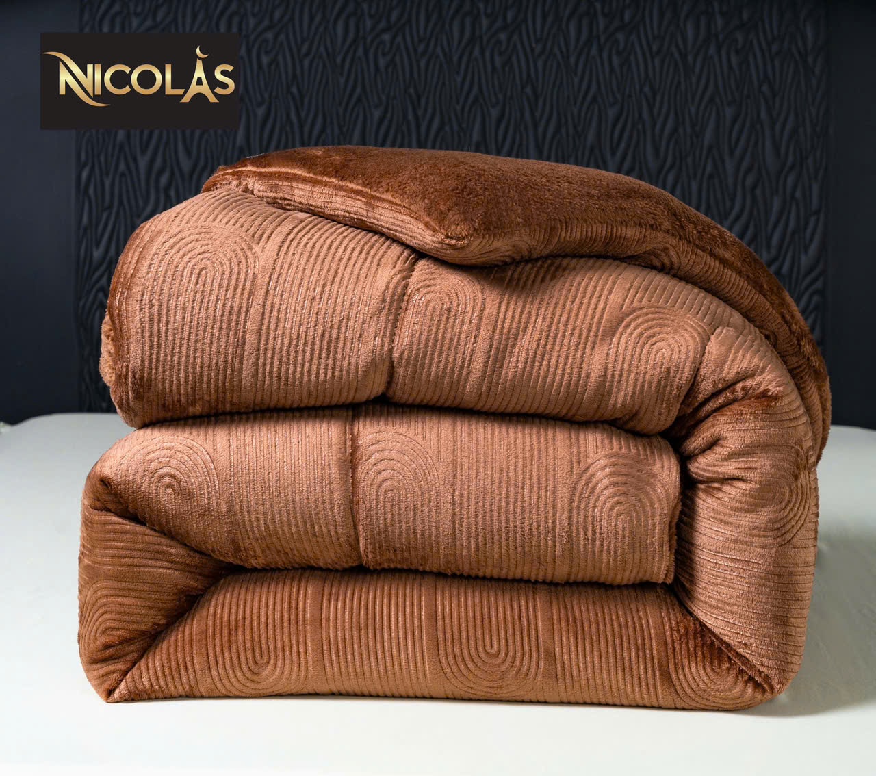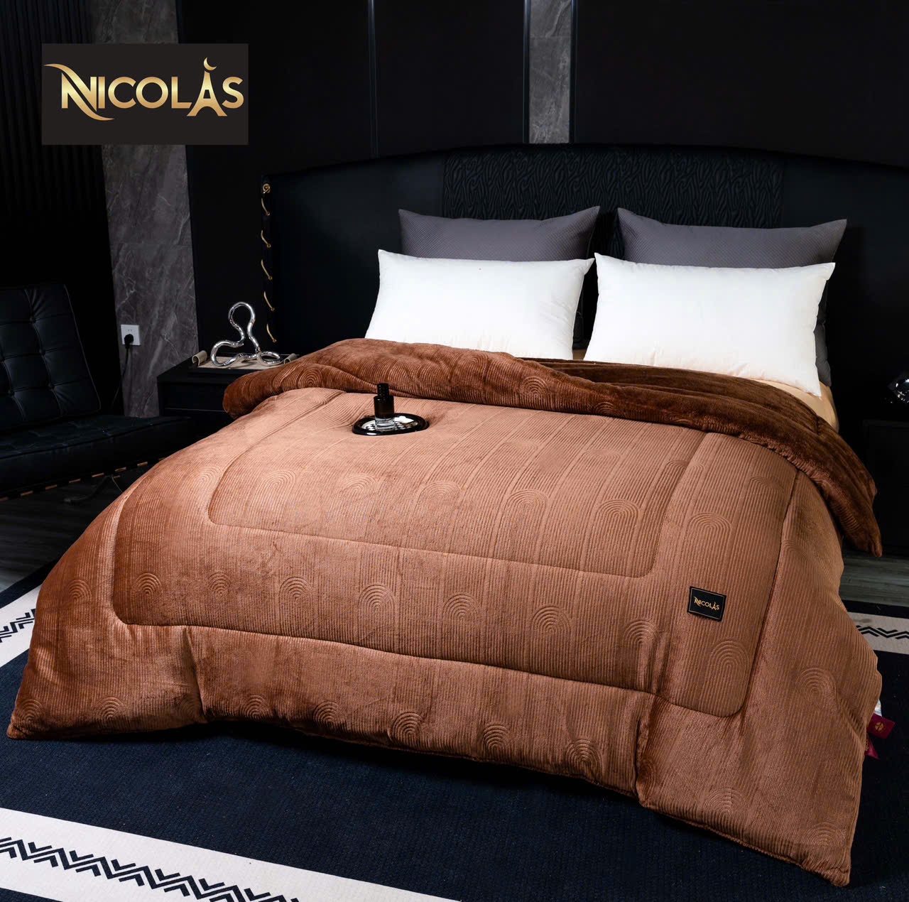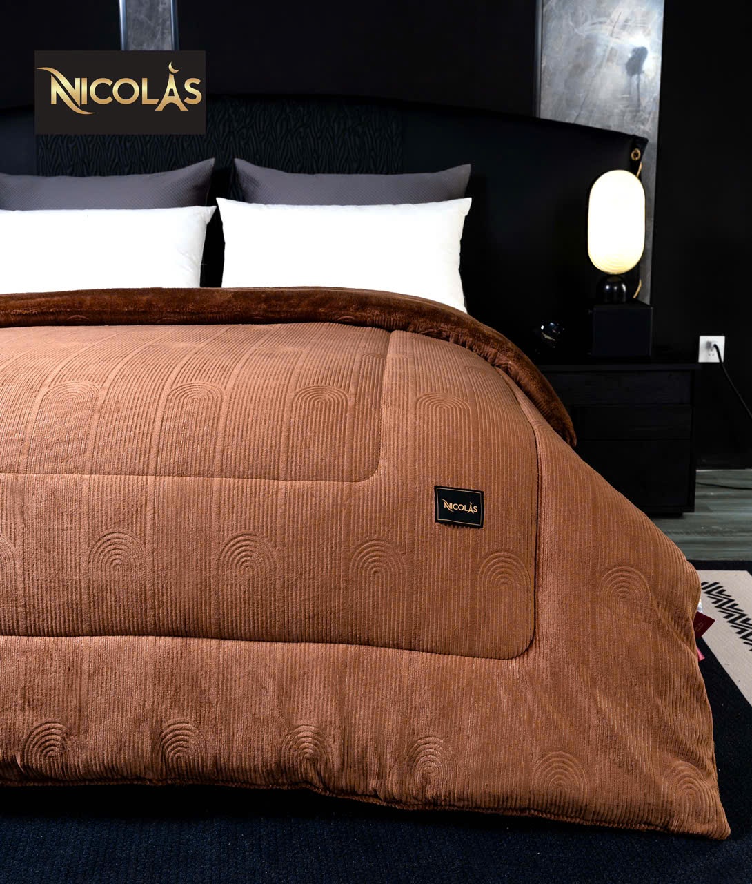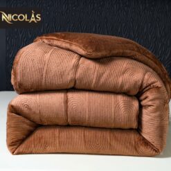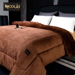 Chất liệu bề mặt lông cừu hoàn toàn ko bụi mịn – lớp bông colagen tạo độ mềm – bồng bềnh và rất thoáng khí ko gây bết – bí khi sử dụng chăn NICOLAS