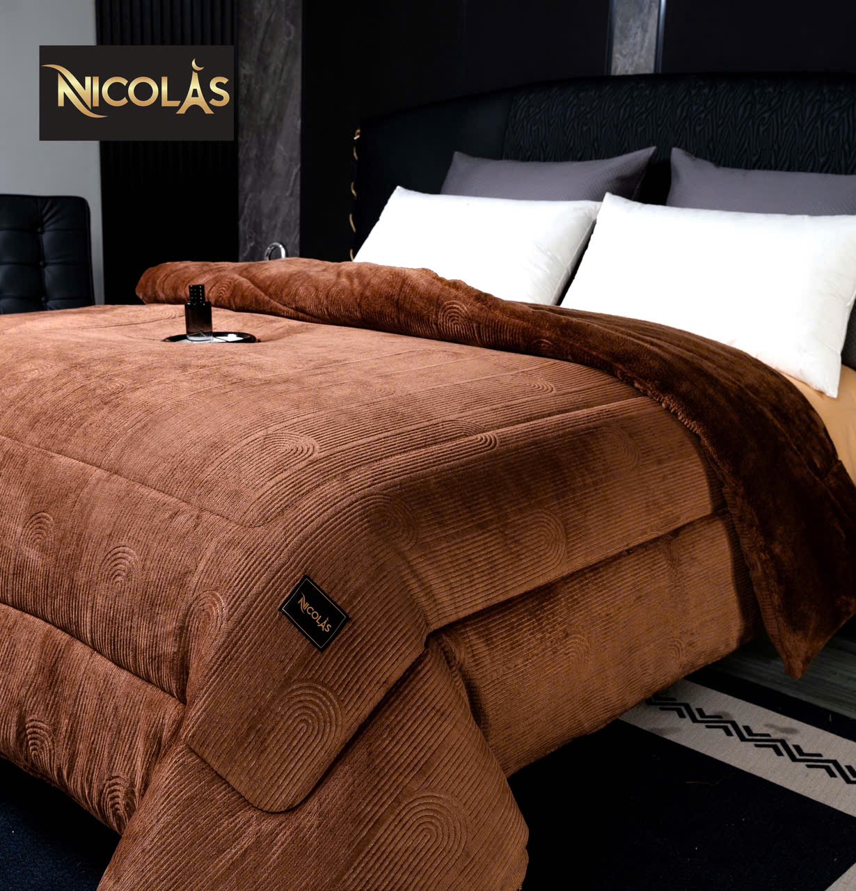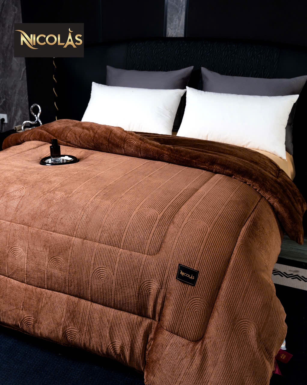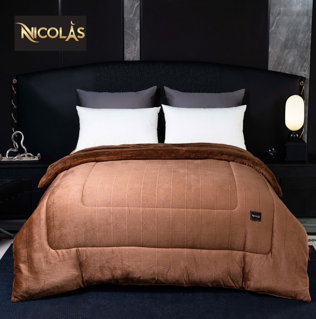 Chất liệu bề mặt lông cừu hoàn toàn ko bụi mịn – lớp bông colagen tạo độ mềm – bồng bềnh và rất thoáng khí ko gây bết – bí khi sử dụng chăn NICOLAS