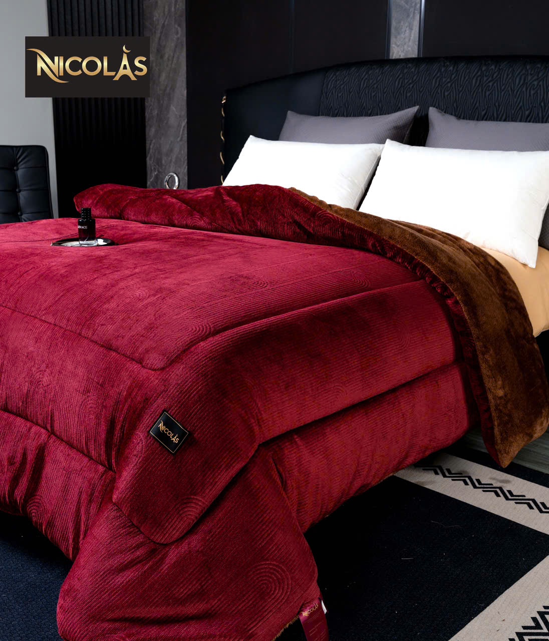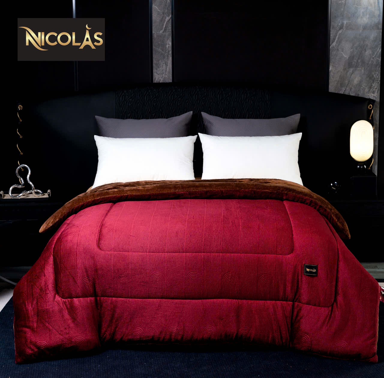 Chất liệu bề mặt lông cừu hoàn toàn ko bụi mịn – lớp bông colagen tạo độ mềm – bồng bềnh và rất thoáng khí ko gây bết – bí khi sử dụng chăn NICOLAS