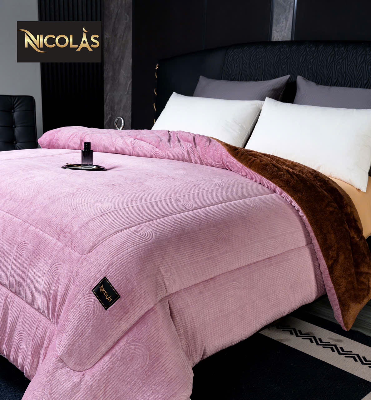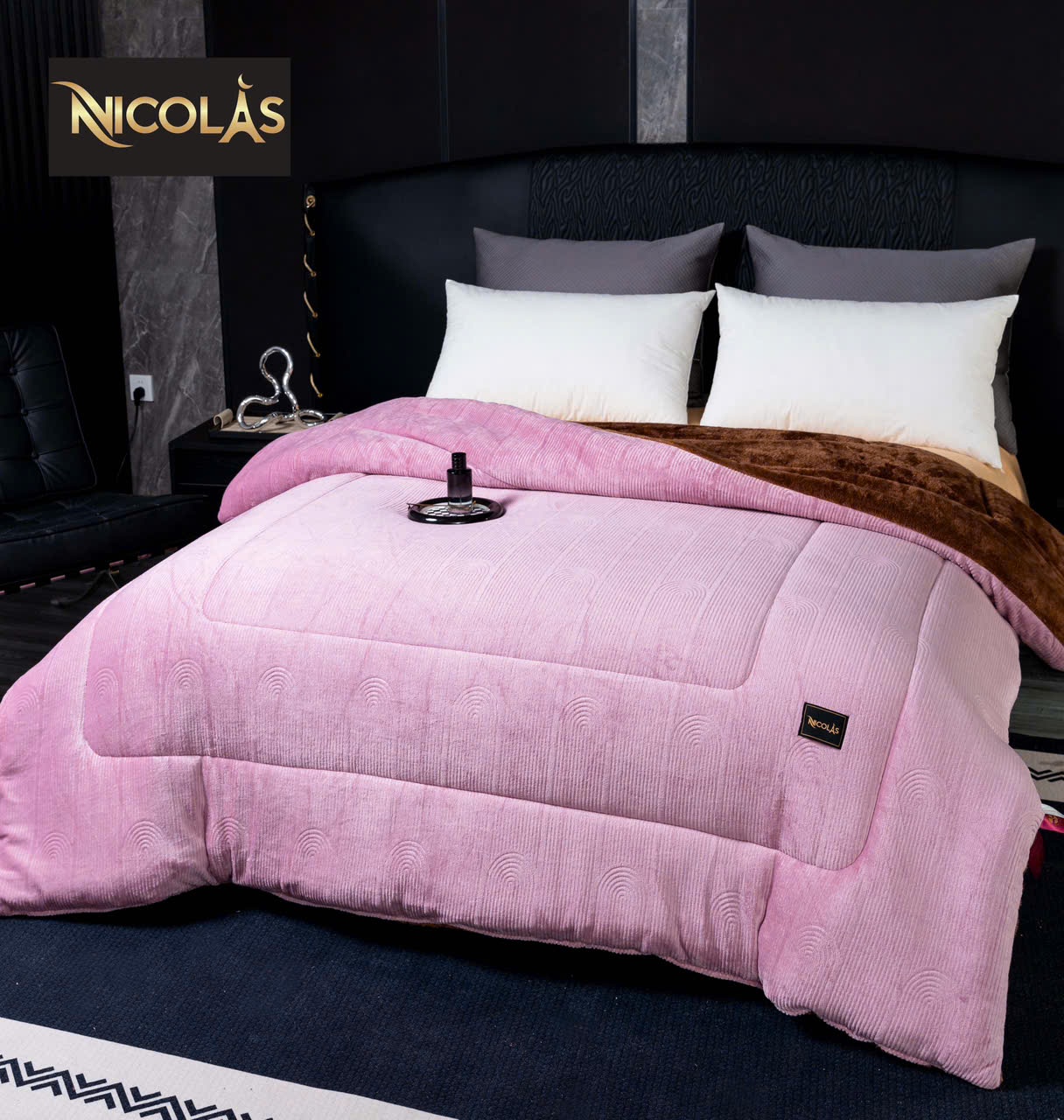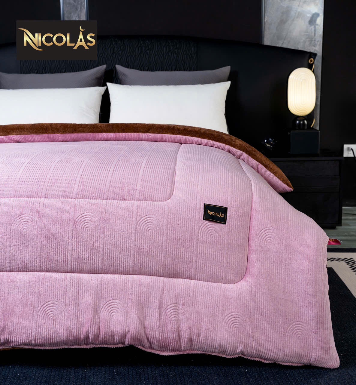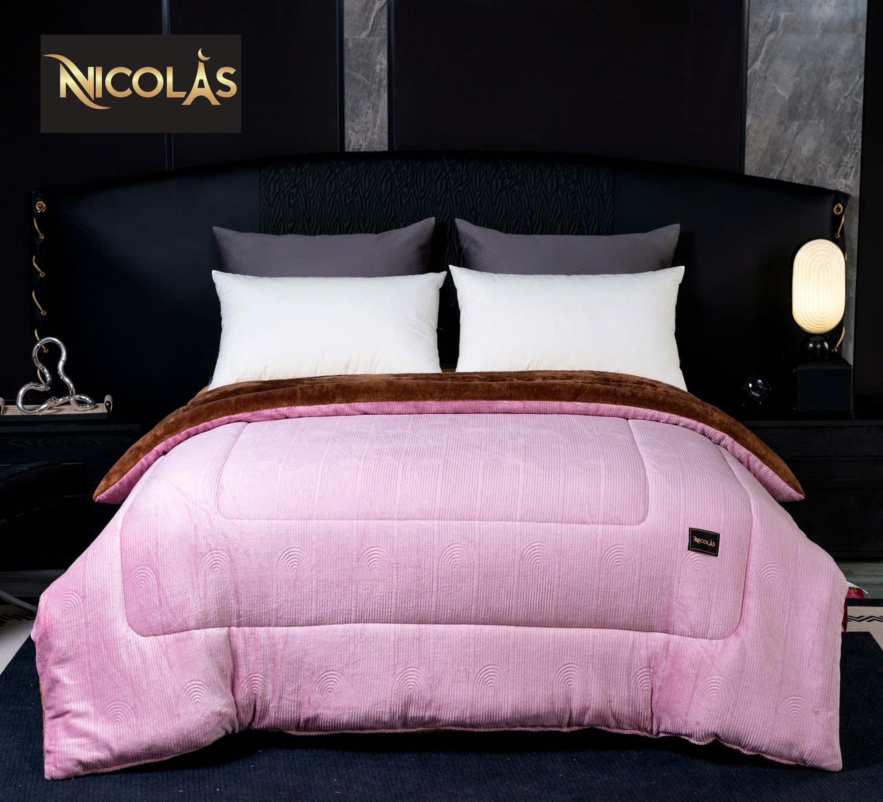 Chất liệu bề mặt lông cừu hoàn toàn ko bụi mịn – lớp bông colagen tạo độ mềm – bồng bềnh và rất thoáng khí ko gây bết – bí khi sử dụng chăn NICOLAS