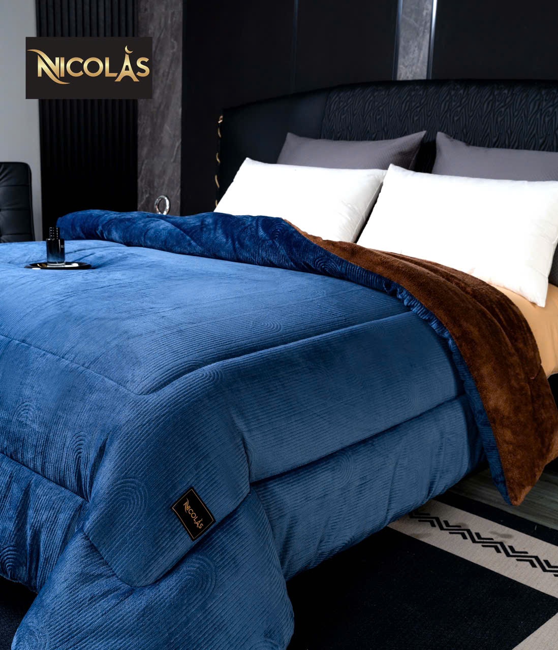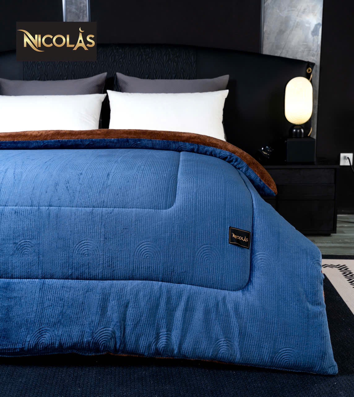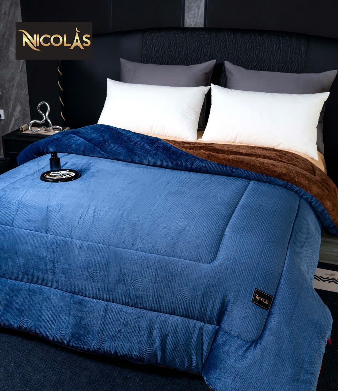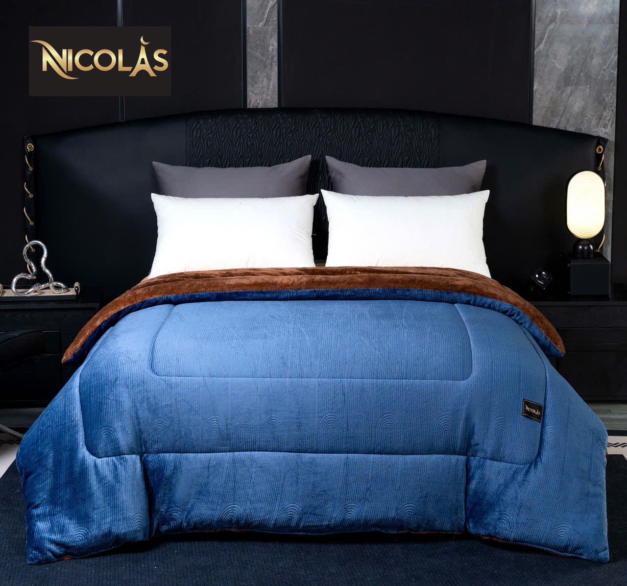 Chất liệu bề mặt lông cừu hoàn toàn ko bụi mịn – lớp bông colagen tạo độ mềm – bồng bềnh và rất thoáng khí ko gây bết – bí khi sử dụng chăn NICOLAS